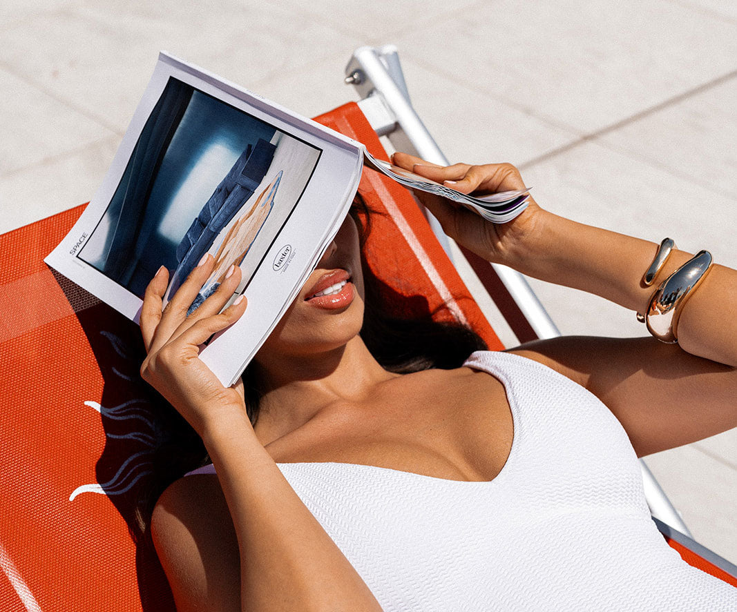 La Dolce Vita Sun Lounge features a shading canopy that protects your face and softens glare, so reading or scrolling stays effortless.